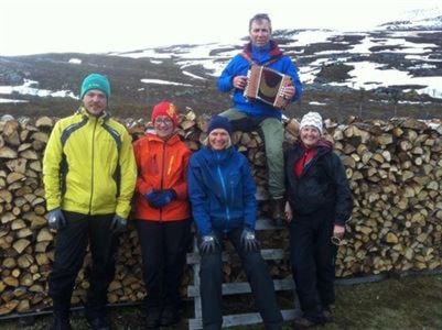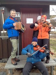 Helga 20.-22.juni var spelmannslaget engasjert til spilleoppdrag i forbindelse med 50+ 40 års jubileum på Rostatunet til Troms Turlag. Mange meldte sin interresse til å bli med på turen, men bare 5 spreke spelemenntok instrumentene i sine store ryggsekker og drog med godt humørmor fjellheimen. Underveis, på tur til parkeringeni Rostadalen fikk vi en sms med beskjed om å ta med " noen" poser med mat som lå gjemt under en bil. Det ble mye som måtte bæres og vi lurte veldig på hva vi skulle gjøre med all den maten. vel framme på hytta forstod vi, kokken Marko var blitt engasjert til å trylle frem gourmettmat til nesten 30 personer på ei hytte uten strøm!